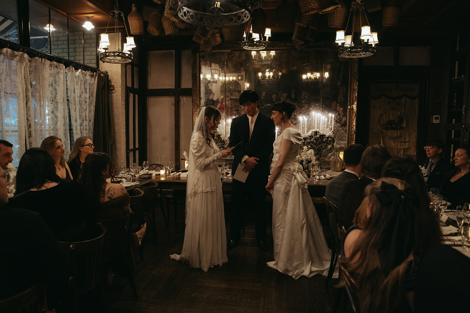 This Vintage Candlelit Wedding at Gemma Wine Room at the Bowery Hotel was shot, as always, on film and digital.